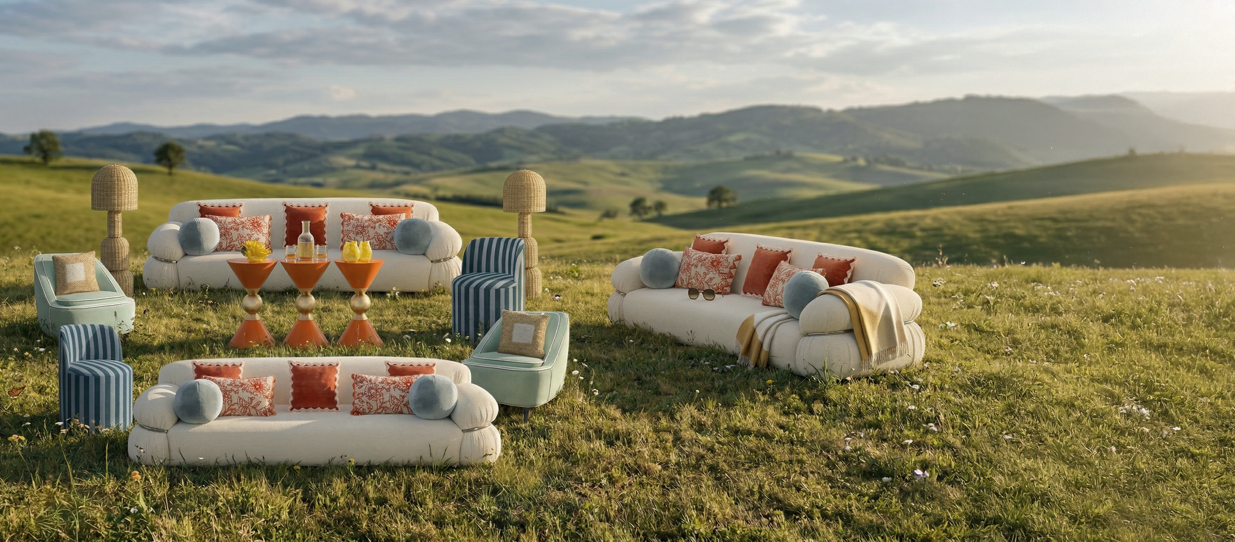 Relaxed with a natural ease, Outdoor Field unites texture, color and open-air charm. Designed for al fresco gatherings, garden parties, and brand moments under the sky, it sets a scene that feels effortlessly inviting for attendees.